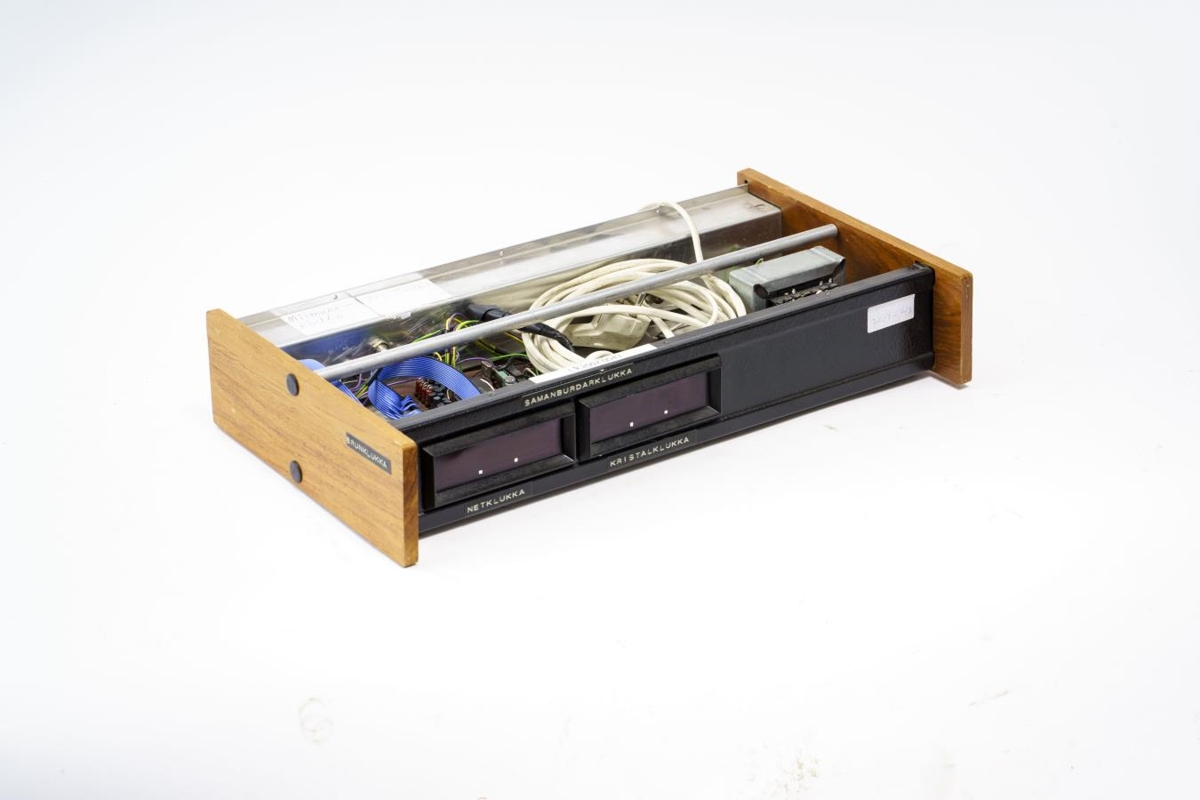 Guðleifur Kristmundsson, verkfræðingur hjá Landsvirkjun lét smíða þessa klukku. Hún er líklega smíðuð af starfsmönnum stjórnstöðvar á Geithálsi þar sem hún var notuð á meðan Leeds og Northrup kerfið var í gangi.