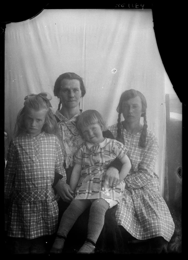 „Sigríður V. Sigurðardóttir á Vígholtsstöðum með dætur sínar. Frá vinstri. Margrét Valgerður Aðalsteinsdóttir, Steinunn Vilhelmína Sigurðardóttir, Sigríður Helga Aðalsteinsdóttir og Guðrún Guðmundsdóttir. Myndin er tekin um 1928-1931. Yngsta dóttirin (fædd í maí 1931) er ekki á myndinni og sú næst yngsta, Sigríður Helga, er fædd í febrúar 1927.“ (VE 2020)