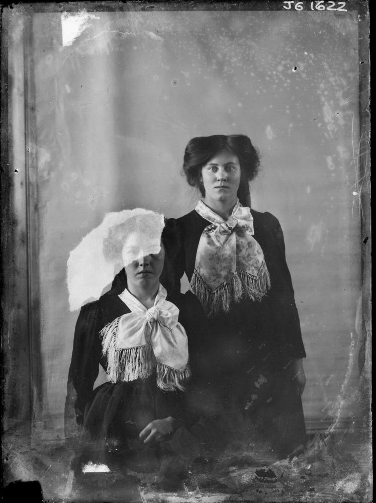 2 saman, Helga Guðmundsdóttir, Núpi, Haukadal og Sigríður Ólafsdóttir, Sólheimum. Hjarðarholtsskóli 1911-1912.