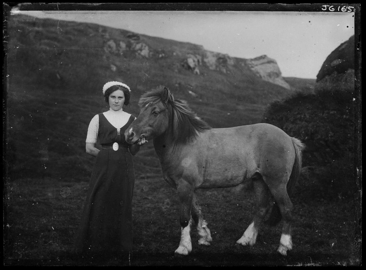 Anna Bjarnadóttir, Sauðafelli, með hest.