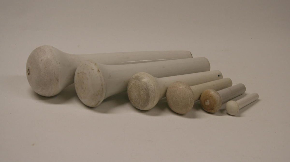 Pistlar úr porstulíni notaðir í mortél. Pistlarnir eru úr postulíni.