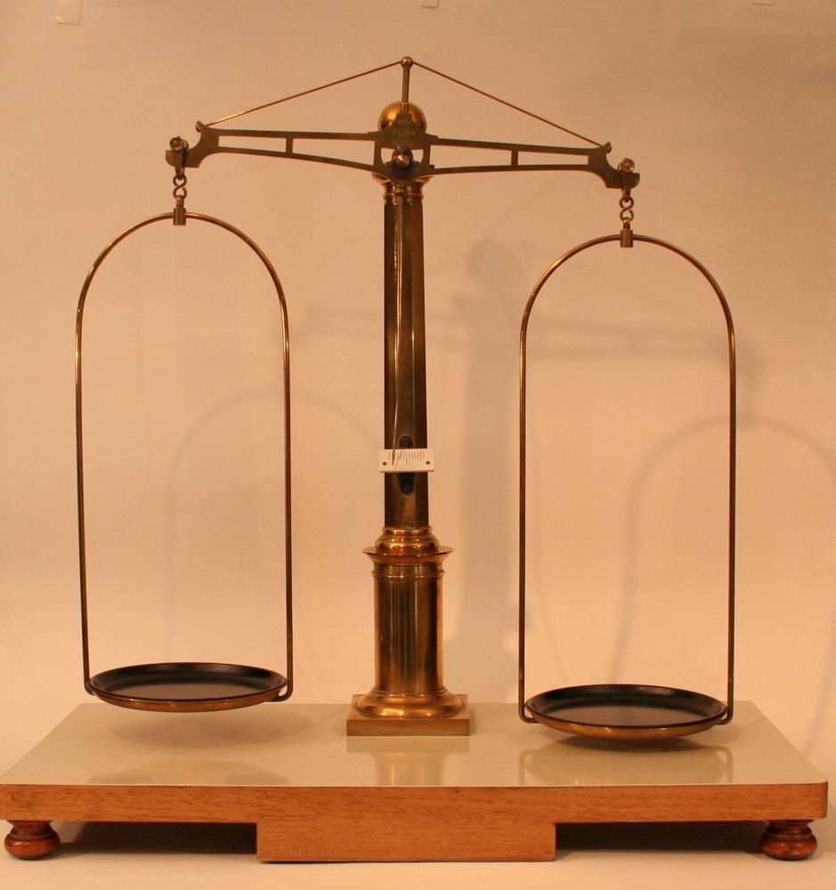Öll vigtin er úr kopar, nema á skálunum eru plötur úr gerviefni (bakelith) og undirstaðan úr tré. Svona vogir voru algengar við framleiðslu á mixtúrum og smyrslum í receptúr apótekanna. Ílát, glas eða krukka var sett á aðra skálina og lítil skál með býhöglum á hina skálini og bætt í höglum þar til jafnvægi komst á þannig er vigtin núllstillt. Þá var komið fyrir lóðum á skálina með höglunum samkvæmt þyngd þess sem átti að vigta og fram kom á lyfseðlinum og efni síða bætt í ílátið þar til jafnvægi komst á. Og síðan koll af kolli eftir því hversu mörg efni áttu að fara íílátið. Oft þurfti að fjarlægja einhver lóð og setja stærri í staðinn, en síðan var oftast bætt í eimuðu vatni eða bragðgóðri saft þar til heildarmagni var náð. Nánari upplýsingar er að finna í Lærebog í Teknisk Farmaci 2. útg. 1951 bls. 20.
