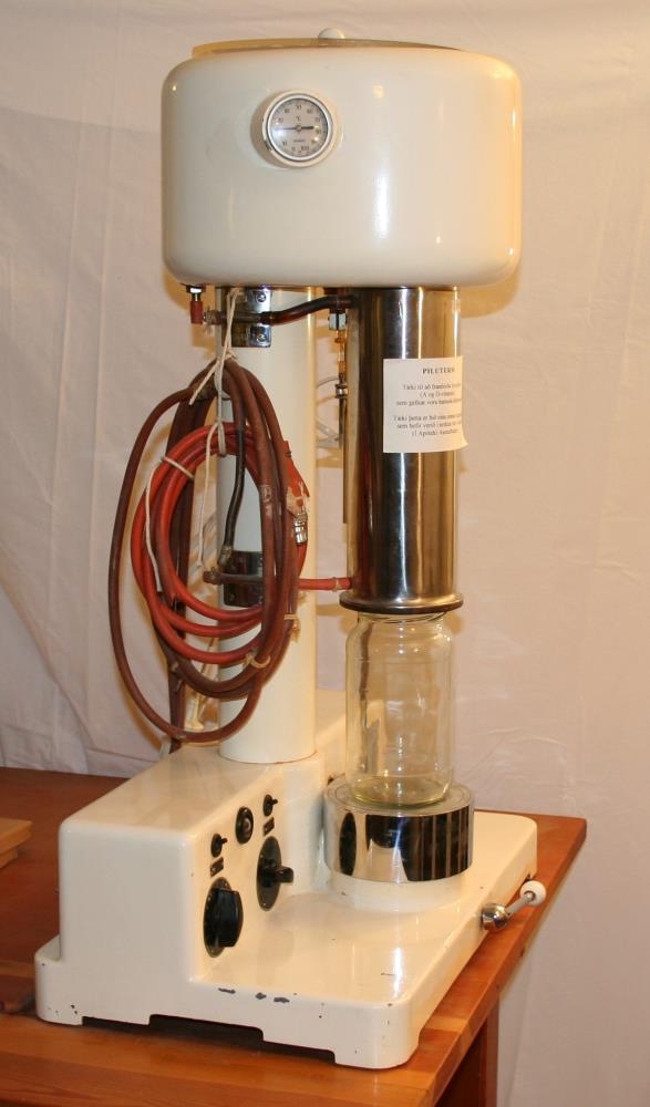 Tæki til þess að framleiða lýsispillur (A og D vítamín) sem gefnar voru barnaskólabörnum. Tæki þetta er hið eina sinnar tegundar sem hefur verið notað hér á landi í Apóteki Austurbæjar.