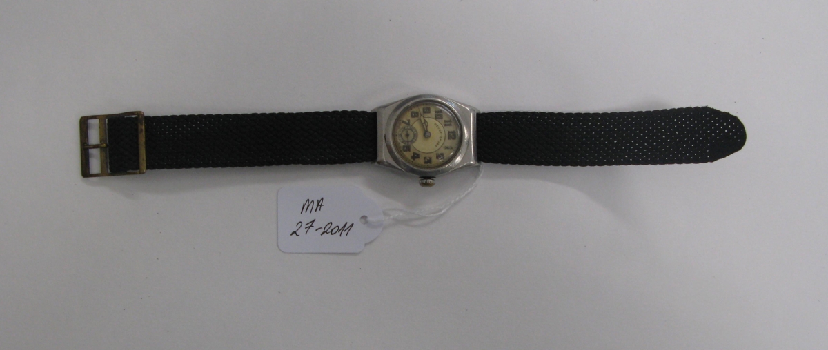 Frekar lítið karlmannsúr. Á skífunni stendur "Revue-sport". Svört ól úr næloni. Kom með skjaladóti frá Þorbirni Arnoddssyni á Héraðsskjalasafnið.