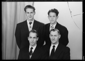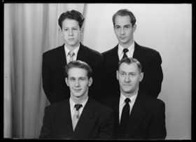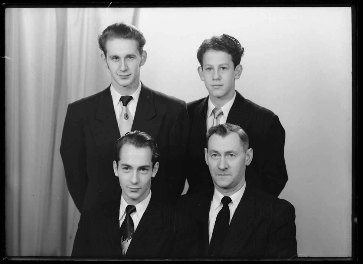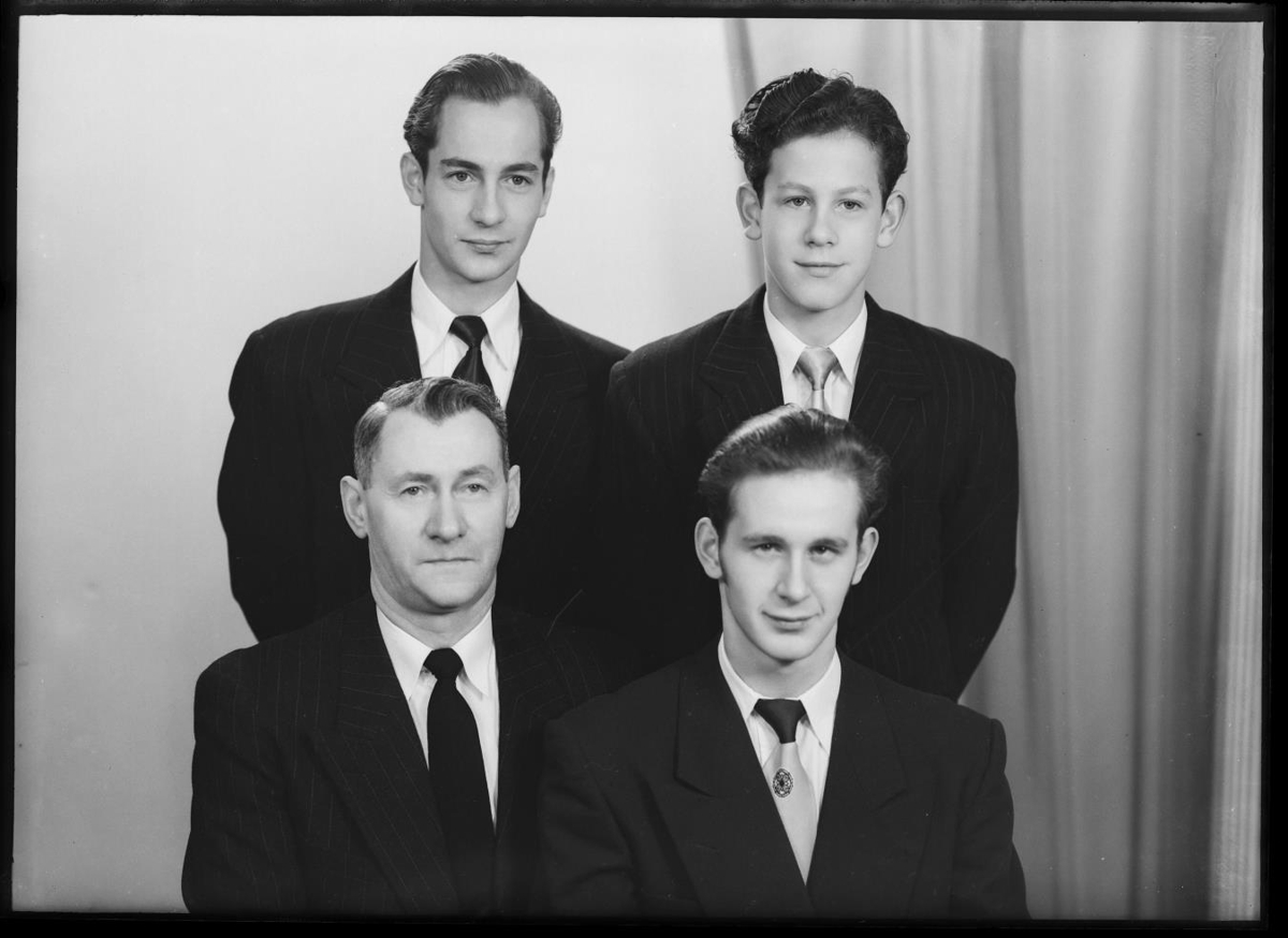 „Faðir með þremur sonum, í efri röð Friðrik og Sveinn, í neðri Theophilus Kjartan og faðirinn Ólafur Helgi Hjálmarsson.“ (YSÁ 2021)