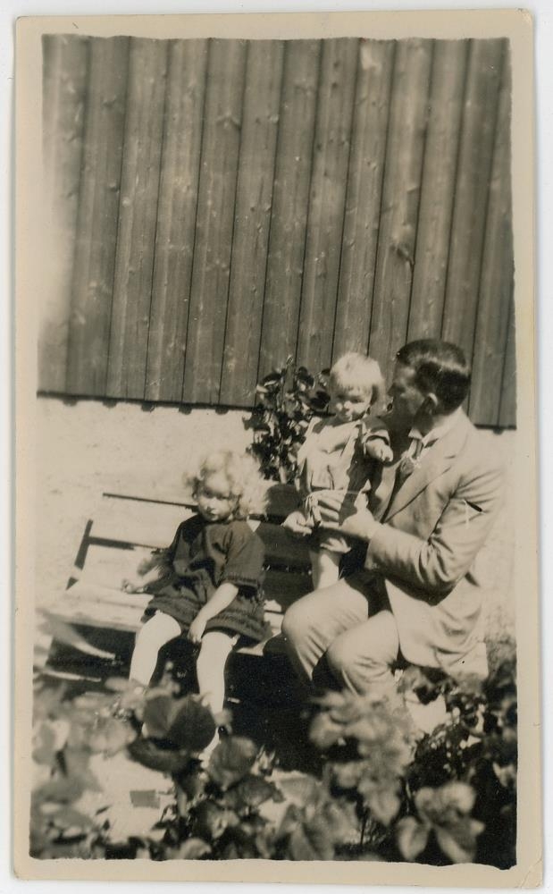 3 saman. Jens Sigurðsson prófasts í Flatey, með tvö börn sín. Amatör-mynd. Amatör-mynd.