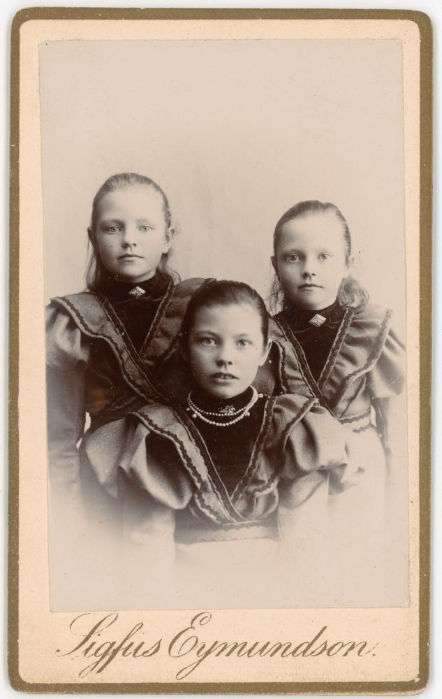 Systurnar Sigríður ljósmyndari (9 ára), Guðrún, g. Þorst. hagstofustj. Þorsteinssyni (10 ára) og Ingileif, dó ógift, (11 ára) dætur Geirs Zoëga, rektors.