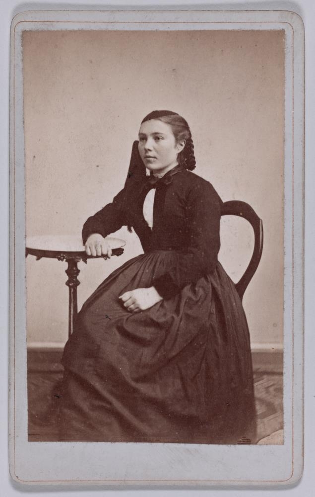 Ljósmyndir með visit-lagi, margar ólímdar á spjald.