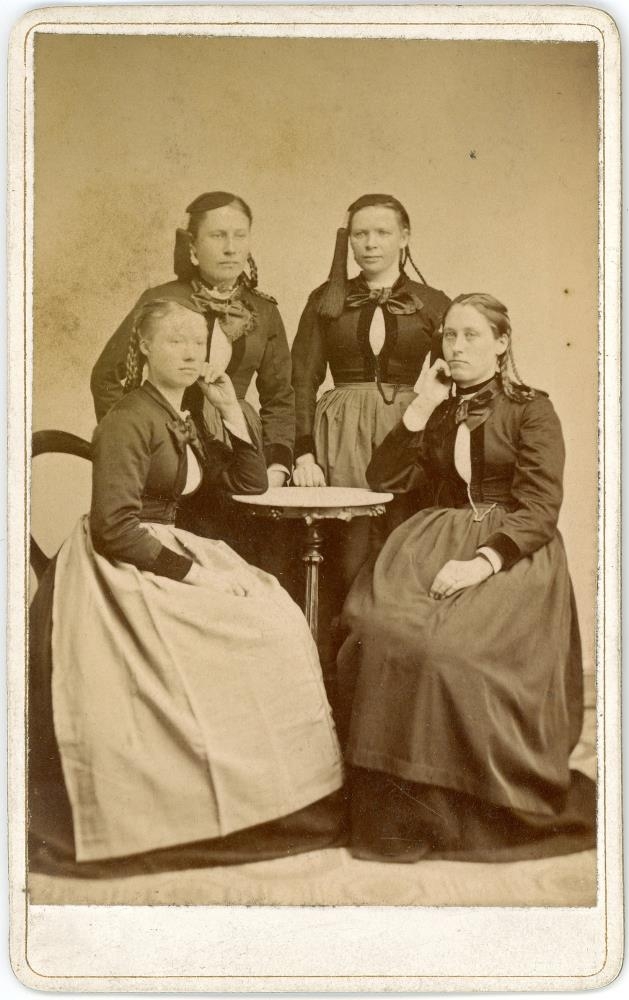 Fjórar konur saman: Ingveldur Kjartansdóttir og Kristín Thorlacius standa, 2 ókunnar sitja.