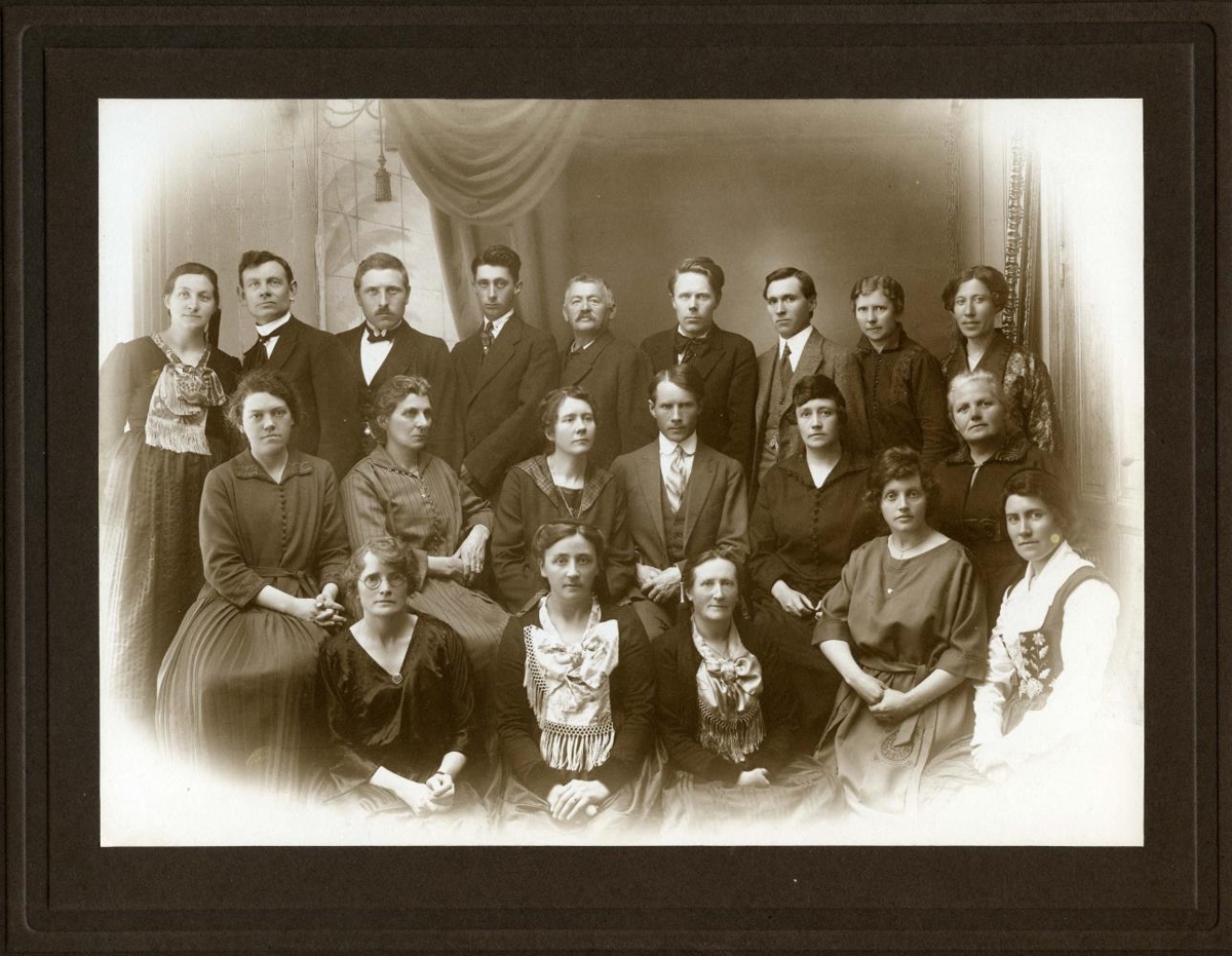 „Þessi hópur eru félagar og gestir Guðspekistúkunnar "Systkinabandið" á Akureyri. Myndin er tekin í myndastofu Hallgríms Einarssonar.“ (HG 2021)