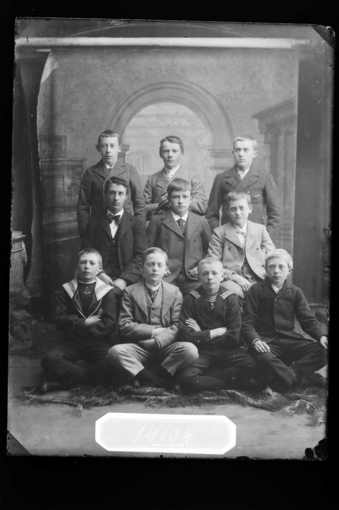 Hópmynd (líklega) af fimleikaflokki Fergusons: (efsta röð): Adam B. Sigmundsson, Jón Sigurðsson (fangavarðar) og óþekktur. Miðröð: Kristinn Zimsen, Sigurður Þorláksson og Sveinn Björnsson. Neðsta röð: Pétur Jónsson, Ólafur Björnsson, Vilhjálmur Finsen og Hannes Helgason.