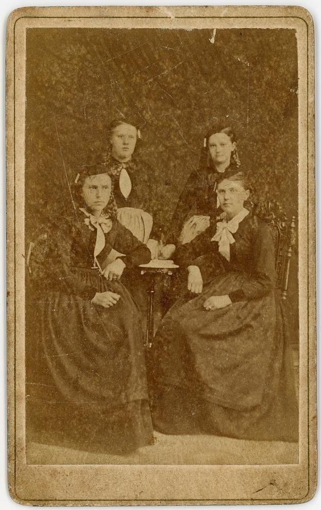 Fremri röð: Guðríður og Ingveldur Johnsen frá Arnarbæli. Efri röð: Sigríður Johnsen, g. Bjarnasen og Sigríður Hjaltested, gift Pálma yfirkennara.