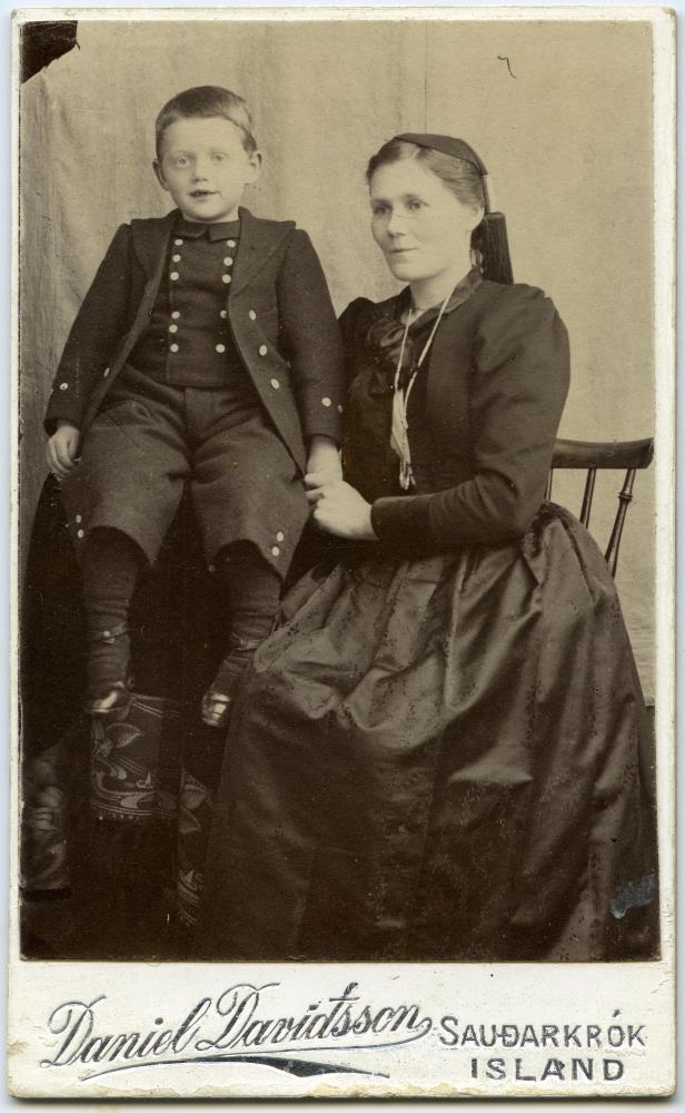 Sigurbjörg Guðnadóttir, kona Jóhanns Jóhannessonar, skósmiðs á Sauðárkróki, síðar bókaútgefandi í Reykjavík, bróðir Sig. Júl. Jóhannessonar, læknis og skálds í Winnipeg; hún er með son sinn Óskar Jóhannsson.