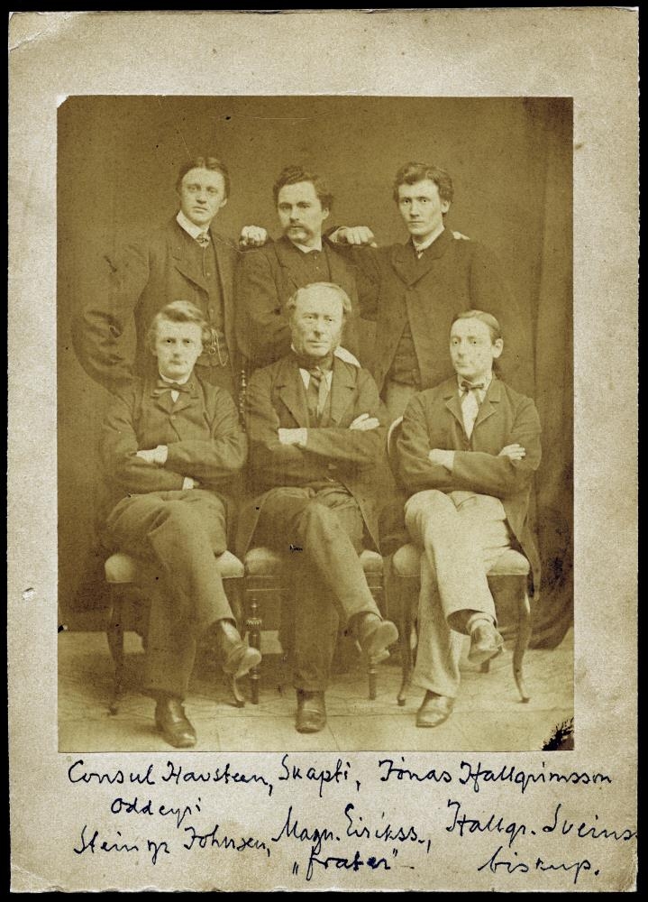 Ljósm. cab. á henni stendur: Consul Havsteen, Oddeyri, Jónas Hallgrímsson, (Skapti Jósefsson?), Steingrímur Johnsen, Magnús Eiríksson „pater“, Hallgrímur Sveinsson biskup.