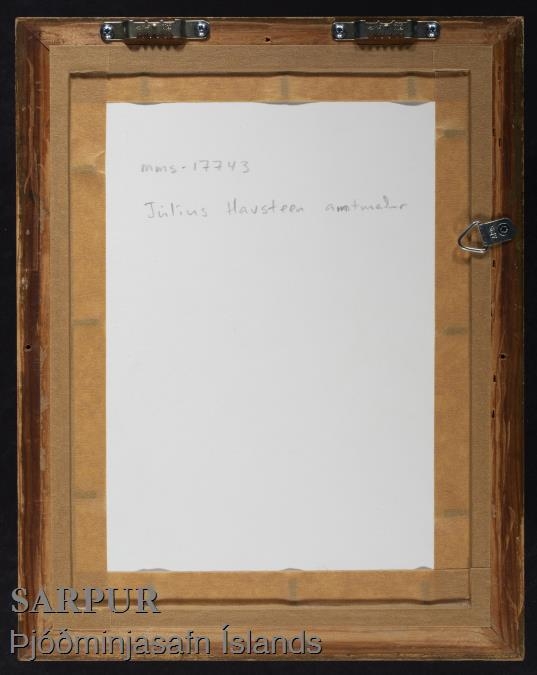 „Myndin er ekki af Júlíusi Havsteen sýslumanni (1886-1960), heldur er hún af föðurbróður hans og alnafna Jóhannesi Júlíusi Havsteen amtmanni (1839-1915). Í æviminningu hans eftir Klemens Jónsson ( https://timarit.is/page/4321197 ) er á bls. 24 að finna dagsetningar sem hann var sæmdur hinum ýmsu stigum dannebrogsorðunnar. Á myndinni hér sést hann með kommandörkross (K.1), sem bendir til þess að myndin er tekin eftir 1. ágúst 1904.“ (JI 2021)