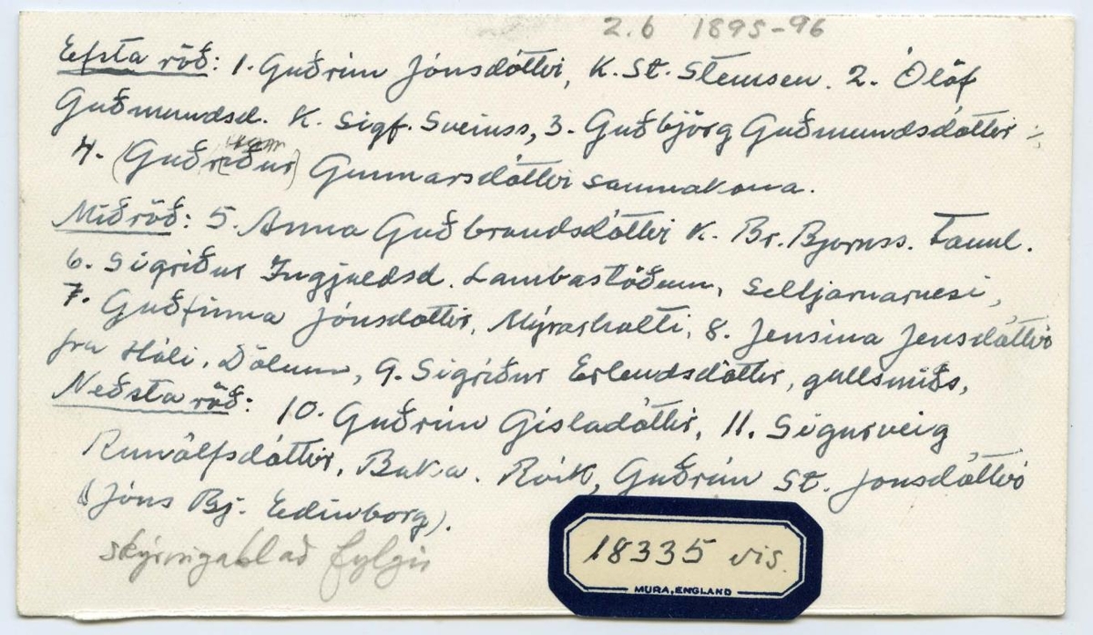 Hópmynd: Úr Kvennaskóla Reykjavík, 2. bekkur 1895-96: