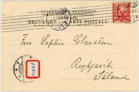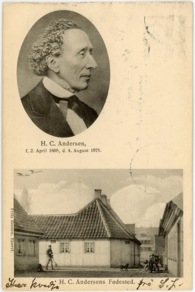 Ljósprentað póstkort: H. C. Andersen, ævintýraskáld. Stílað á Sophie Claessen, Reykjavík.