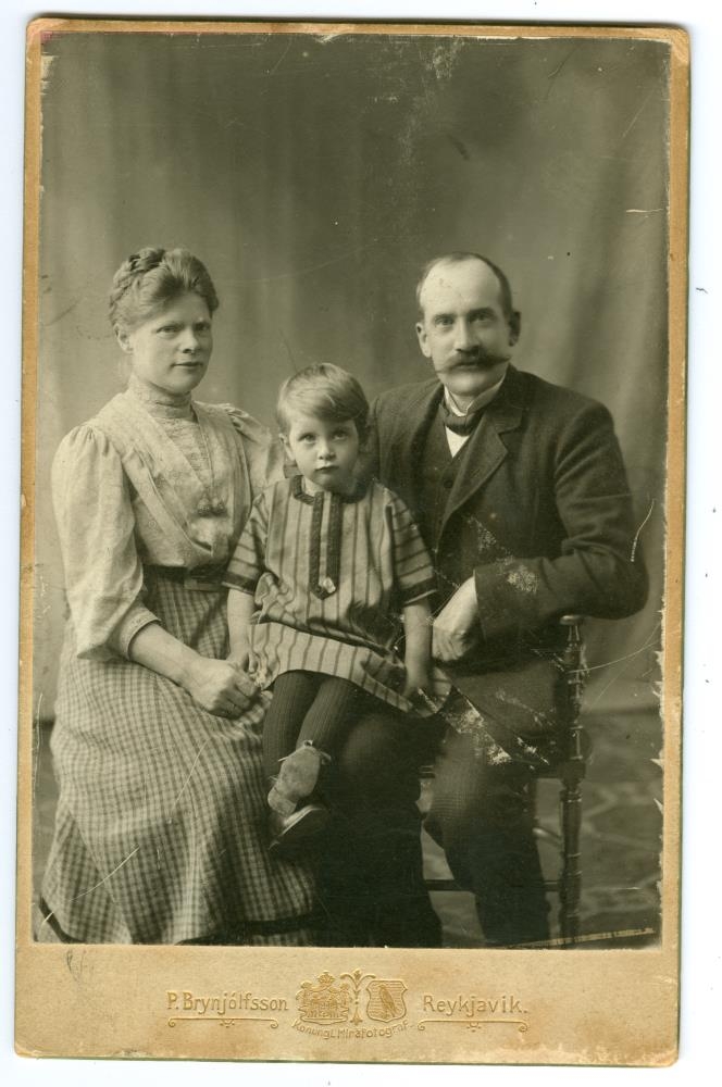 Sæmundur Bjarnhéðinsson, læknir og prófessor, kona hans Christophine Mikkeline f. Jörgensen og dóttir þeirra.