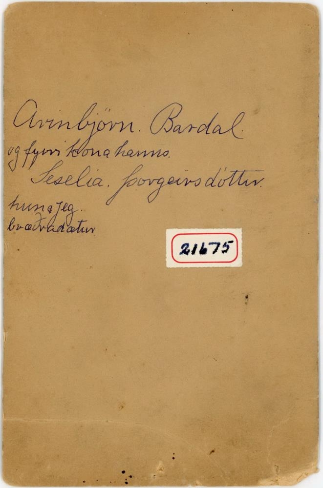 Hjónin Sesselja Þorgeirsdóttir og Arinbjörn Sigurgeirsson Bardal, bóksali og útfarastjóri. Fóru til Vesturheims 1886-1887. Sesselja var fósturdóttir bróður Arinbjörns.