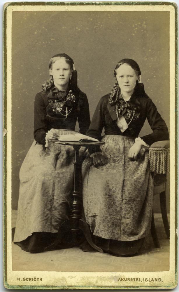 „Helga er tv og Anna Guðmundsdóttir f ca 1865 er th, og það er Anna Schiöth sem er ljósmyndarinn.“ (HG 2024)