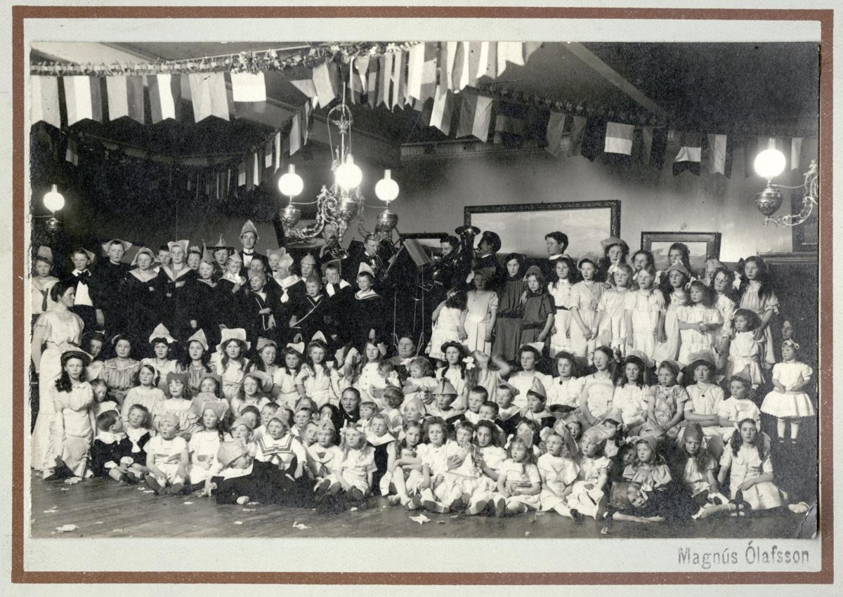 Barnaball á Hótel Reykjavík um 1911. Hópmynd, barnaball á Hótel Reykjavík um 1911. Á myndinni þekkjast: