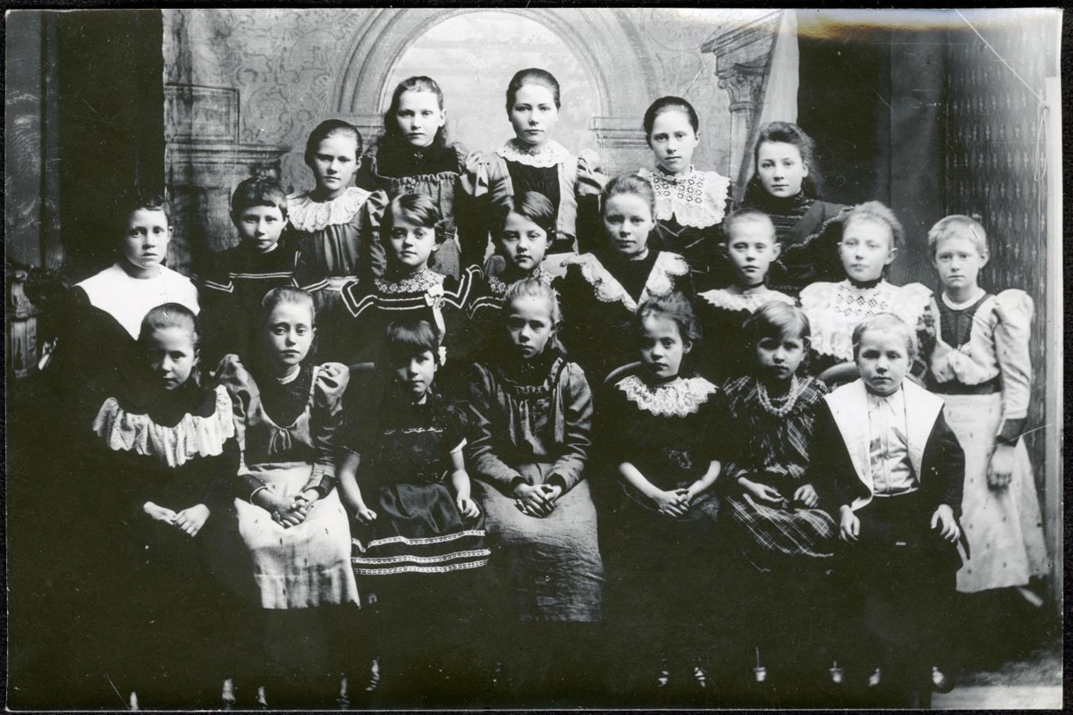 Hópmynd. 17 stúlkur, 2 piltar. Hópmynd: Abelína Gunnarsdóttir, Anna Guðmundsdóttir, Exinia Hansen, Stefanía Eriksen, Karla Hansen, Guðrún Eriksen, Erik Eriksen, Friðrik Gunnarsson, Fríða Guðmundsdóttir, Soffía Thorsteinsson, Guðrún Thorsteinsson, Vilhelmína Breiðfjörð, Rigmor Hanson, Rakel Jónsdóttir, Kristjana Guðmundsdóttir, Jóhanna Gísladóttir, Ingibjörg Eriksen, Rósa Þórarinsdóttir, Hansína Gunnarsdóttir?