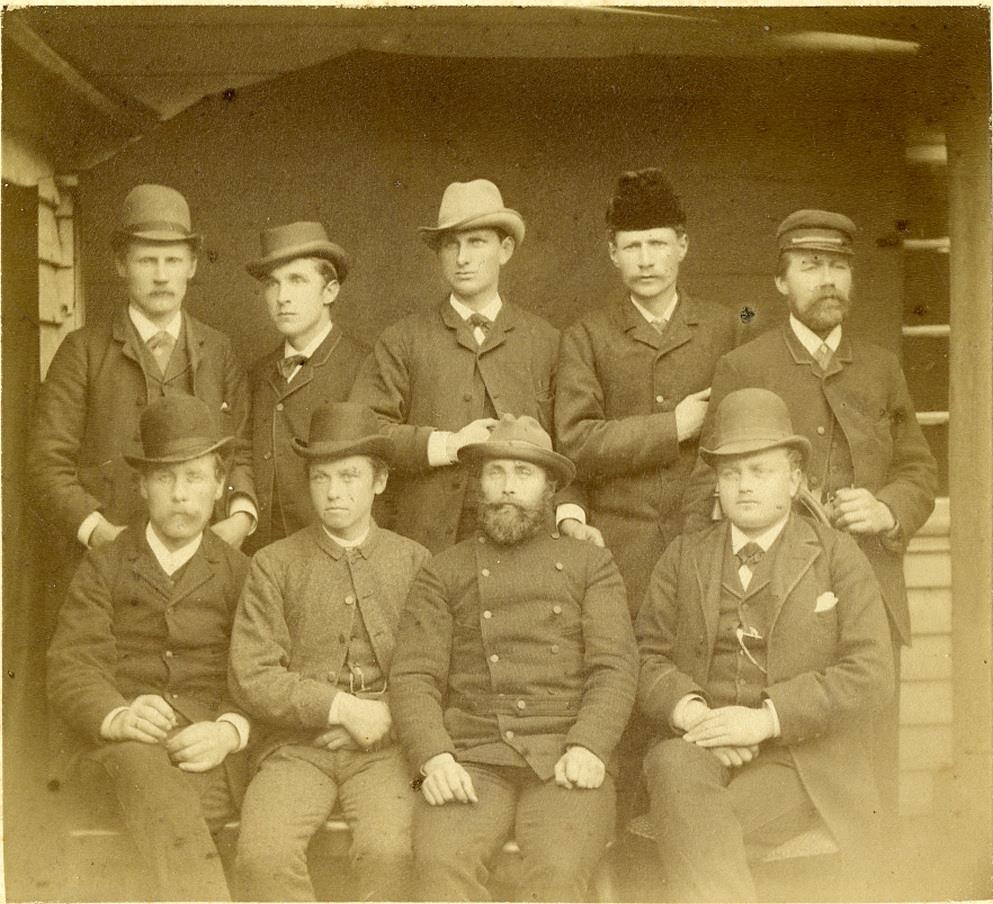 Neðri röð: 1. Sveinn Sigfússon kaupmaður Norðfirði. 2. Jón Arnesen forstjóri. 3. Benedikt Hallgrímsson vert og ragari. 4. Sr. Jón Guðmundsson síðar prófastur í S.-Múl.
