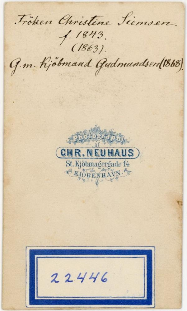 Christine Siemsen g. Guðmundsen. Maður hennar var Sveinn Guðmundsen kaupmaður á Búðum, Borðeyri og Akranesi.