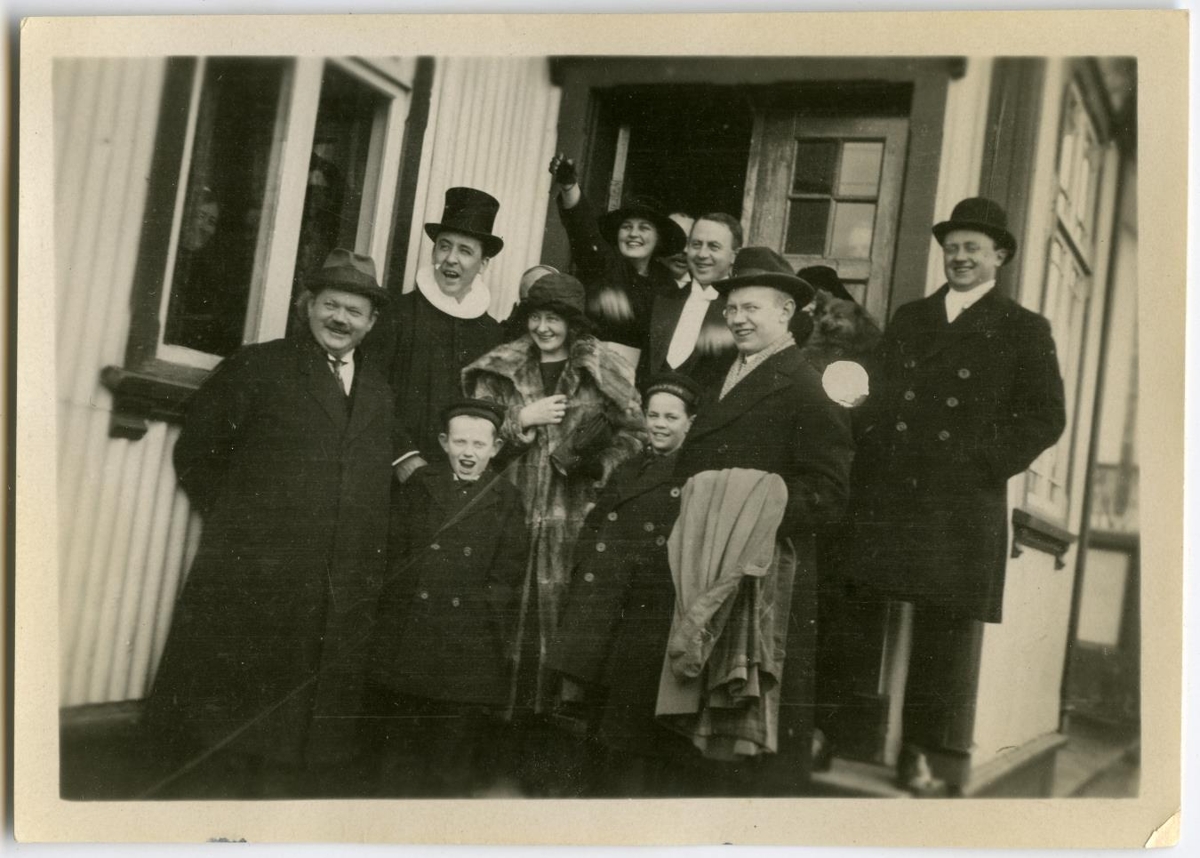 Gestir í brúðkaupi Benedikts Gröndals verkfræðings og Halldóru Flygenring. Hópmynd: Gestir í brúðkaupi Benedikts