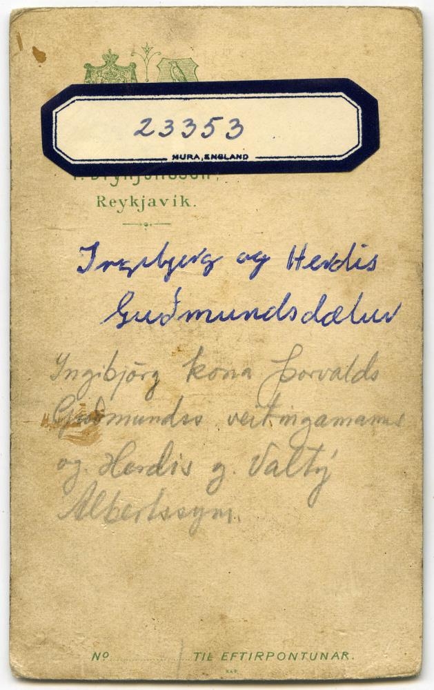 Til baka í leitVeistu meira?Vista í mitt safnPrentaAfrita slóðPanta myndNotkunarskilmálarSysturVarðveitt hjáÞjóðminjasafn Íslands2 systurAðrar upplýsingarLjósmyndari: Pétur Brynjólfsson Herdís Guðmundsdóttir, Á mynd Ingibjörg Guðmundsdóttir, Á myndEfniSvart/hvít pósitíf, Annars konar pósitífSafnnúmerSafnnúmer A: Mms-23353Stærð9 x 6 cmAðfangategundLjósmyndirUndirskrárUndirskrá: Mannamyndasafn (Mms)FlokkunMannamyndirEfnisorð / HeitiMyndefni: SysturHeimildirAðfangabók Þjóðminjasafns Íslands. Nr. 21806 -25504.