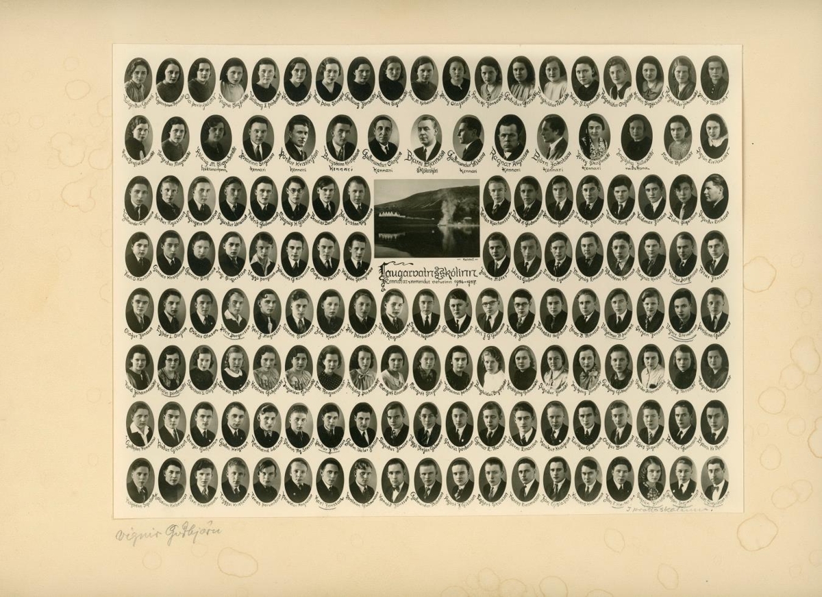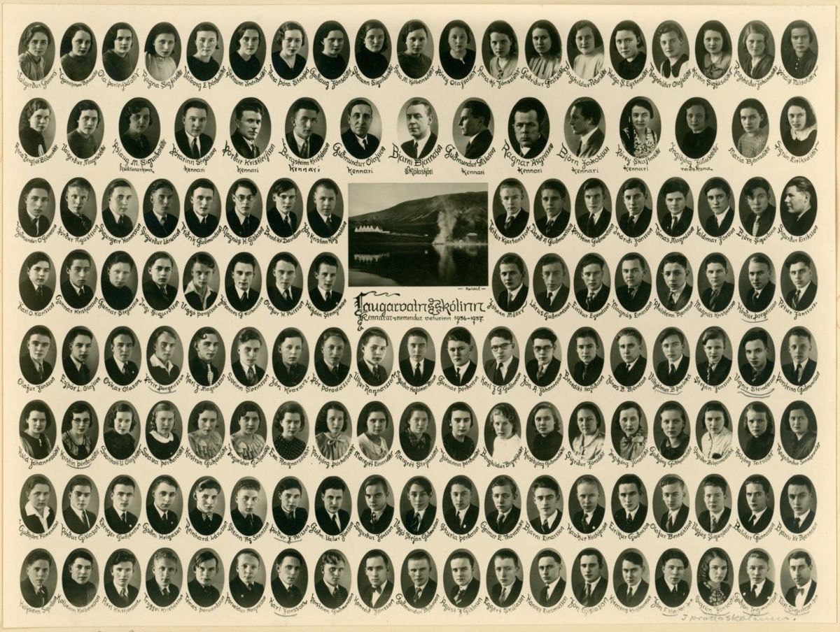 Laugarvatnsskólinn 1936-1937, kennarar og nemendur: Valgerður Gunnarsdóttir; Gunnþórunn Björnsdóttir; Óla Þorleifsdóttir; Ragna Sigfúsdóttir; Valborg E. Þórðardóttir; Steinunn Indriðadóttir; Anna Þóra Steinþórsdóttir; Guðlaug Jónsdóttir; Steinunn Sigurðardóttir; Anna M. Kolbeinsdóttir; Þórey Ólafsdóttir; Anna Kr. Jónsdóttir; Guðríður Gestsdóttir; Borghildur Pétursdóttir; Helga S. Eysteinsdóttir; Ragnhildur Ólafsdóttir; Kristín Sigfúsdóttir; Ragnheiður Jóhannsdóttir; Þórdís Pálsdóttir; Anna Bergljót Böðvarsdóttir; Valgerður Magnúsdóttir; Áslaug M. Sigurðardóttir hjúkrunarfræðingur; Þórarinn Stefánsson kennari; Þórður Kristleifsson kennari; Bergsteinn Kristjónsson kennari; Guðmundur Ólafsson kennari; Bjarni Bjarnason skólastjóri; Guðmundur Gíslason; Ragnar Ásgeirsson kennari og ráðunautur; Björn Jakobsson íþróttakennari; Þórey Skaftadóttir kennari; Ingibjörg Júlíusdóttir ráðskona; María Björnsdóttir; Sigrún Eiríksdóttir; Guðmundur O.Gunnarsson; Þórður Ágústsson; Sigurgeir Hannesson; Sigurður Lárusson; Friðrik Guðmundsson; Magnús H. Gíslason; Benedikt Davíðsson ; Jón Kristinn Rögnvaldsson; Teitur Kjartansson; Davíð R. Guðmundsson; Þorsteinn Guðmundsson; Indriði Jónsson; Tómas Magnússon; Valdimar Jónsson; Björn Sigurðsson; Sigurður Eiríksson; Karl O. Karlsson; Gunnar Kristjánsson; Gunnar Stefánsson; Ingi Sigurðsson; Viggó Þorgilsson; Jóhannes G. Kolbeinsson; Ólafur H. Pálsson; Hálfdán Steingrímsson; Jóhann Möller; Lárus Guðmundsson; Eiríkur Eyvindsson; Magnús Einarsson; Aðalsteinn Bjarnason; Magnús Kristjánsson; Hörður Þorgeirsson; Pétur Jónsson; Ólafur Jónsson; Eyþór L. Ólafsson; Óskar Ólason; Þórir Þorgeirsson; Karl J. Magnússon; Sveinn Sveinsson; Jón Kvaran; Þór Þóroddsson; Úlfur Ragnarsson læknir; Sigurður Hafsteinn Pálsson; Gunnar Þórðarson; Karl G. Guðbrandsson; Jón Á.Jóhannesson; Benedikt Hafliðason; Jónas B. Björnsson; Vilhjálmur B. Þorláksson; Stefán Jónsson; Vignir Guðbjörn Steindórsson; Þorsteinn Guðmundsson; Huld Jóhannesdóttir; Kristín Þórðardóttir; Svanhvít U. Ólafsdóttir; Svava Þórðardóttir; Kristrún Guðjónsdóttir; Ingveldur Guðjónsdóttir; Eva Ragnarsdóttir; Þorbjörg Þórhallsdóttir; Margrét Einarsdóttir; Margrét Stefánsdóttir; Jóhanna Þórðardóttir; Borghildur Brynjólfsdóttir; Kristbjörg Guðmundsdóttir; Sigríður Jónsdóttir; Ingibjörg Jónsdóttir; Guðbjörg Guðbjartsdóttir; Sigríður Ásbjarnardóttir; Ásbjörg Teitsdóttir; Ragnheiður Sveinbjörnsdóttir; Guðbjörn Frímannsson; Þórður Gíslason; Ebenezer Guðjónsson; Guðni Helgason; Reinhard Lárusson; Steinn Ág. Steinsson; Þórður J. Pálsson; Guðmundur Valur Jónsson; Sigurður Jónsson; Viggó Stefán Guðmundsson; Sturla Þórðarson; Grímur E. Thorarensen; Bjarni Einarsson; Haukur Kristófersson; Eiríkur Guðnason; Ólafur Benediktsson; Vigfús Sigurjónsson; Baldur Gunnarsson; Bjarni Kr. Bjarnason; Hafsteinn Sigurðsson; Kolbeinn Kolbeinsson; Axel Kristjánsson; Tryggvi Kristjánsson; Tómas Þorvarðsson; Þorvaldur Magnússon; Karl Jónsson; Þorsteinn Guðmundsson; Konráð Jónsson; Guðmundur Björnsson; Ágúst J. Gíslason; Eggert Skúlason; Hannes Erasmusson; Jón Gíslason; Klemenz Kristmannsson; Jón F. Hjartar; Sigrún Jónsdóttir; Guðjón Ingimundarson; Páll Sigurðsson.