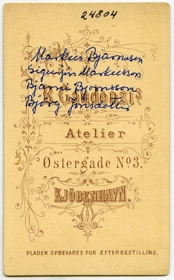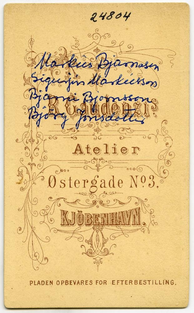 Markús Bjarnason skólastjóri Stýrimannaskólans, kona hans Björg Jónsdóttir, sonur þeirra Sigurjón, síðar sýslumaður og Bjarni Björnsson.