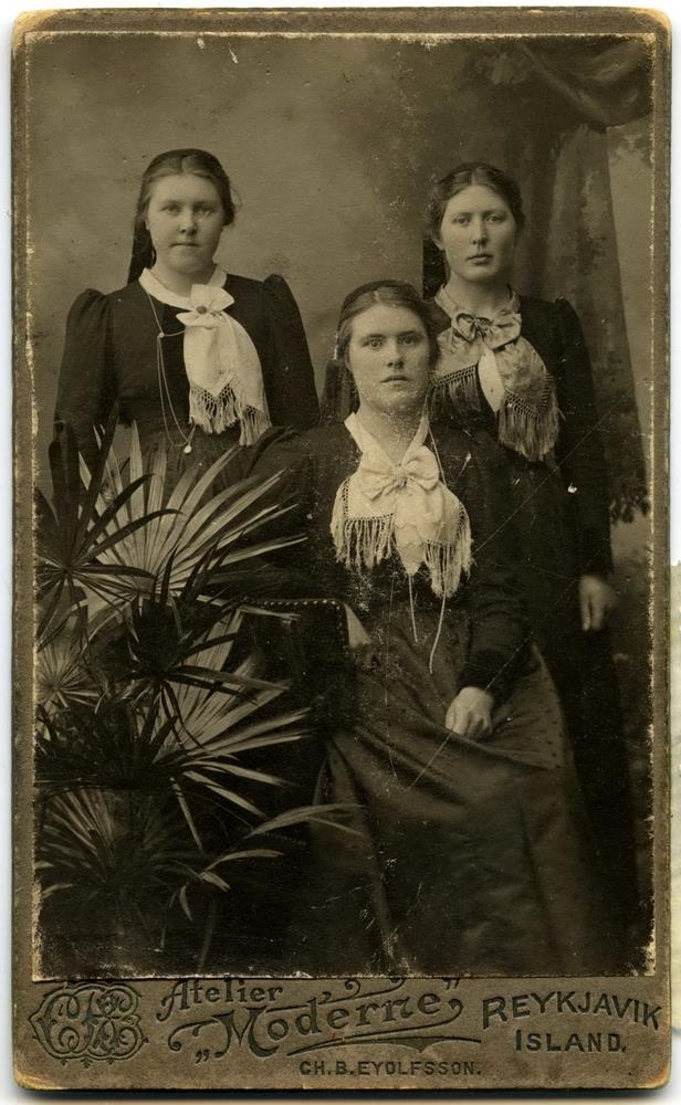 Jónína Ámundadóttir, kona Geirs Sigurðssonar skipstjóra, Sigríður Sigurðardóttir (kona Akra-Jóns sbr. 27984) og Margrét Gísladóttir kona Jóns Ágústs Jónssonar, Vatnsleysu.
