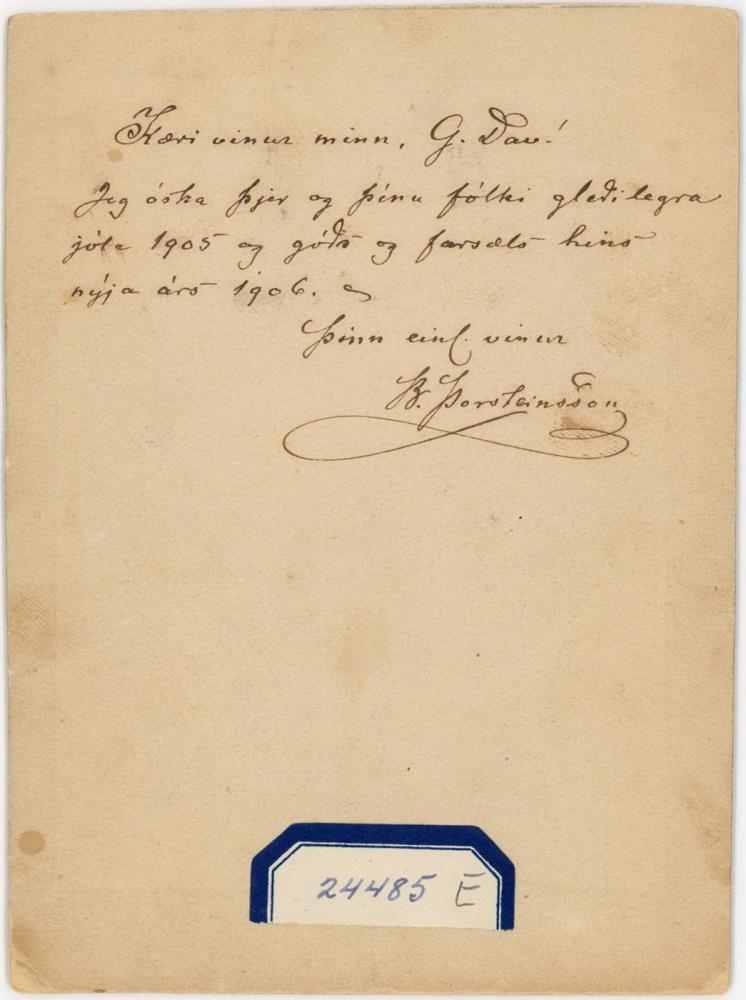 Jeg óska þjer og þínu fólki gleðilegra jóla 1905 og góðs og farsæls hins nýja árs 1906.