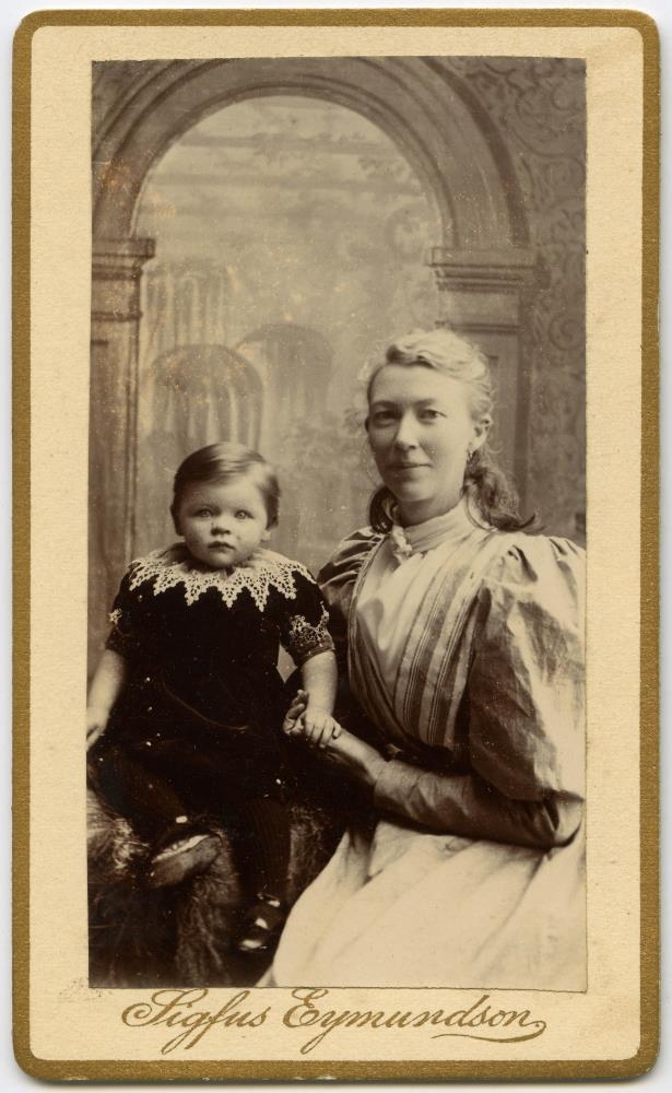 Susie Briem, kona Halldórs Briem bíkavarðar og sonur þeirra Sigurður gítarkennari.