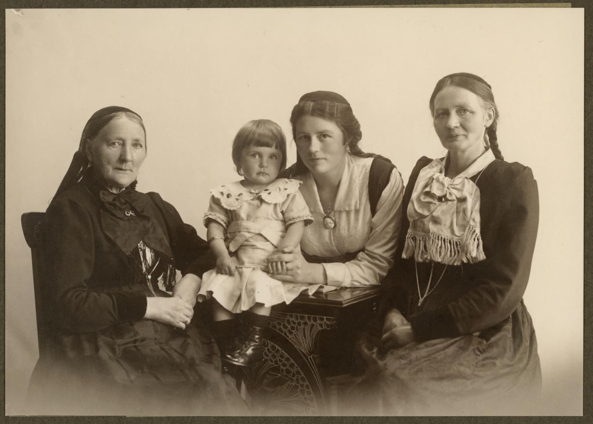 Hópm. Ljósm. spjaldst. 25 x 16.5 cm: Hópm., frá v.: Ingunn Halldórsdóttir, kona Hermanníusar Johnson sýslumanns, Velli, Guðbjörg Bergs, kona Kristbjarnar Tryggvasonar læknis, Elín Bergs, f. Thorstensen, kona Helga Bergs forstjóra, Guðbjörg Thorstensen Hermannsdóttir, kona sr. Jóns Thorstensen Þingvöllum.