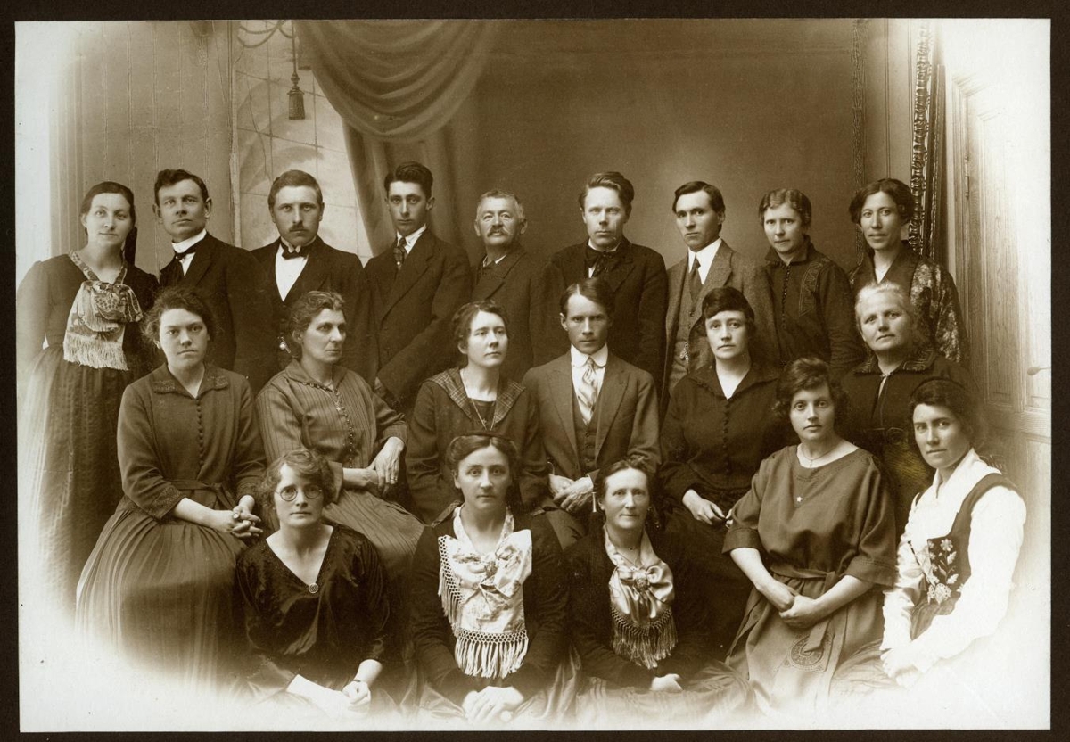 Miðröð frá v.: Sigríður Björnsdóttir Jenssonar rektors Sigurðssonar, Lára Ólafsdóttir (sbr. Bréf til Láru), Aðalbjörg Sigurðardóttir kona Haralds Níelssonar prófessors, sr. Jakob Kristinsson fræðslumálastjóri, Kristín Matthíasson, kona Steingríms Matthíassonar læknis, Margrét Schiöth kona Axels Schiöths bakarameistara (stofnandi Lystigarðsins á Akureyri).