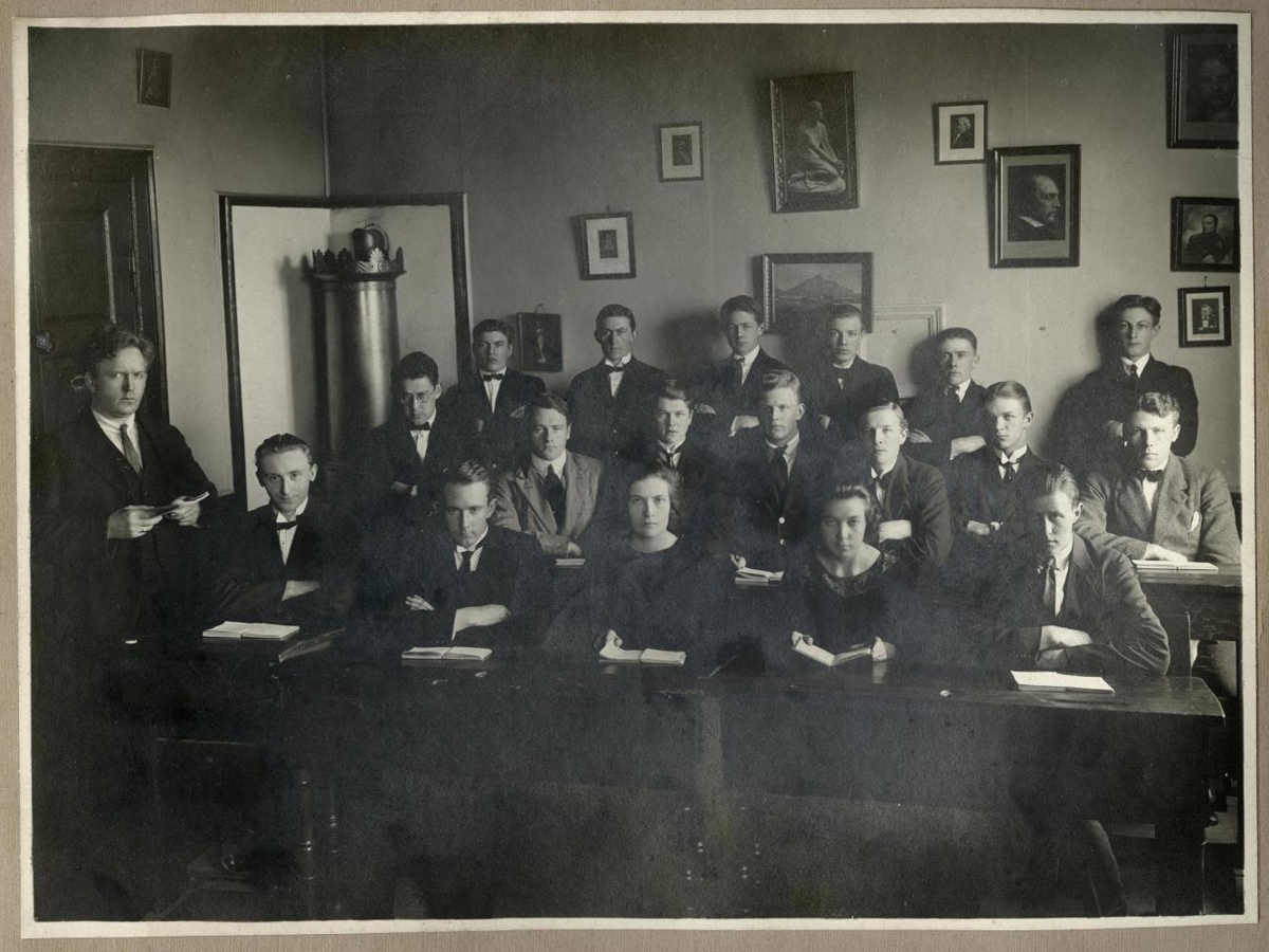 Menntaskólabekkur, líklega 6. bekkur 1924 - 25: Bogi Ólafsson (kennari), Kristján Grímsson læknir, Gunnar Þorsteinsson hæstaréttarlögmaður, Davíð Þorvaldsson rithöfundur, Þorsteinn Ö. Stephensen leikari, Jón Guðmundsson skákmaður, Guðmundur Karl Guðmundsson læknir, Gerður Bjarnhéðinsson læknir, Arnljótur Jónsson, Pétur Benediktsson bankastjóri, Valdimar Briem frá Stóra - Núpi, Guðmundur Ólafs bankastjóri, María Hallgrímsdóttir læknir, Þorvaldur Blöndal læknir, Eiríkur Benedikz sendiráðritari, Ulf Jónsson lögfræðingur, Kornelíus Haralz, Pétur Hafstein cand. jur., Haraldur Sigurðsson læknir.