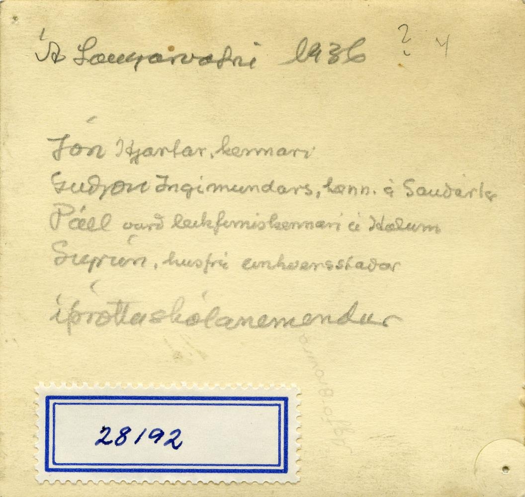 1936? Jón Hjartar, Guðjón Ingimundarson, Páll leikfimikennari Hólum og