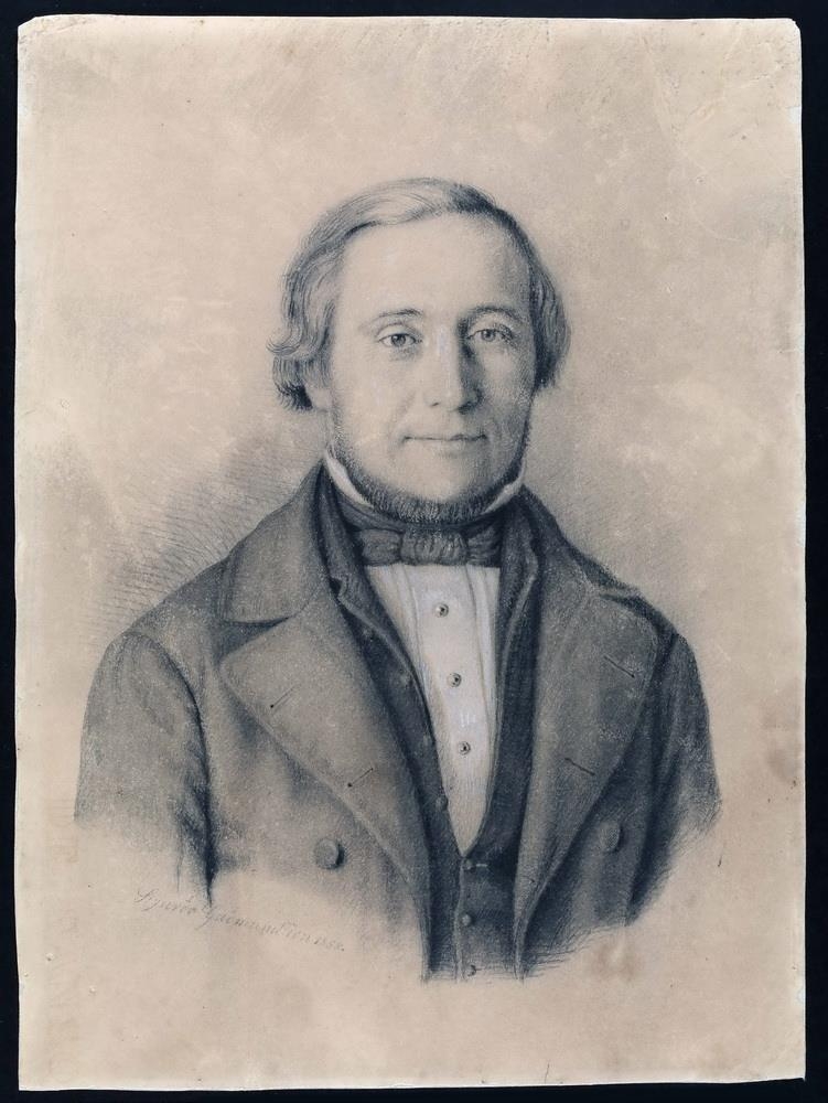 Blýantsteikning, 30 x 22 cm. í 2 cm br. tréramma: Ludvig Árni Knudsen (1822-1896) verslunarmaður, afi seljanda. Myndina gerði Sigurður málari Guðmundsson og er áritun hans á myndinni neðan til vinstra megin: Sigurður Guðmundsson 1858.