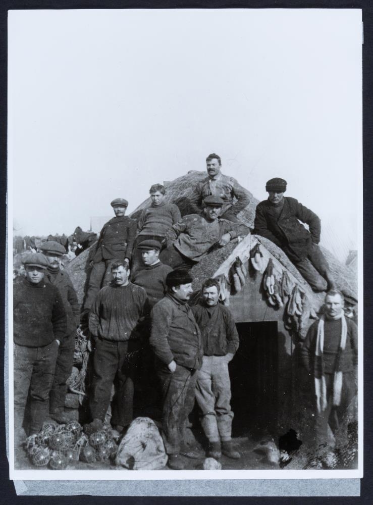 Skipshöfn Bjarna Grímssonar formanns fyrir utan verbúð í Þorlákshöfn. Dagbjartur stýrimaður, sonur Bjarna Grímssonar, veitti upplýsingar um nöfn mannanna (sjá bakhlið myndar og laus blöð): Gísli Gissurarson, Reykjum, Ölfusi (var frá Gljúfurholti), aðrir segja þennan mann vera Ingvar Þorvarðarson frá Meðalholtum í Flóa, Þórður Magnússon Votmúla norðurkoti, Bjarni Stefánsson Eyði-Sandvík, faðir Brynjólfs alþm., ráðherra og rithöfundar, Einar Guðmundsson Oddagörðum, Jón Þorkelsson Smjördölum, Ásmundur Eiríksson frá Þórðarkoti, síðar Háeyri (frá honum eru upplýsingarnar um nöfnin), Bjarni Grímsson formaður frá Óseyrarnesi, Filippus Bjarnason, Stokkseyri, síðar brunavörður í Reykjavík, Jón Bjarnason, Gerðum, Gaulverjabæjarhreppi, Halldór Jónsson bóndi Mjósundi, Guðmundur Helgason Hól á Stokkseyri, Guðmundur (Magnússon?) frá Hala í Holtum.