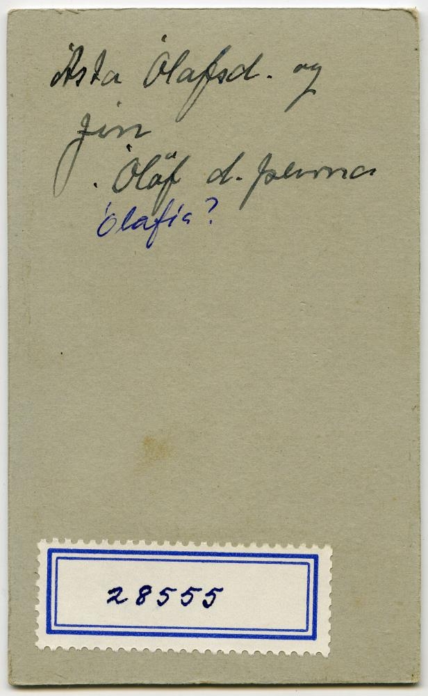Ásta (Ástríður?) Ólafsdóttir, Auðnum, Vatnsleysuströnd, fyrri maður hennar Jón og dóttir þeirra Ólöf (eða Ólafía).