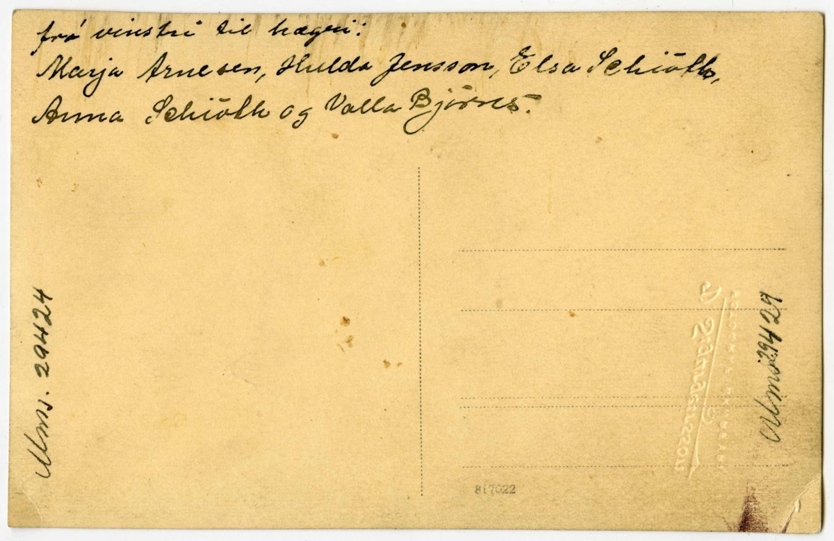 5 konur. Ljósmynd póstkort. María Arnesen,