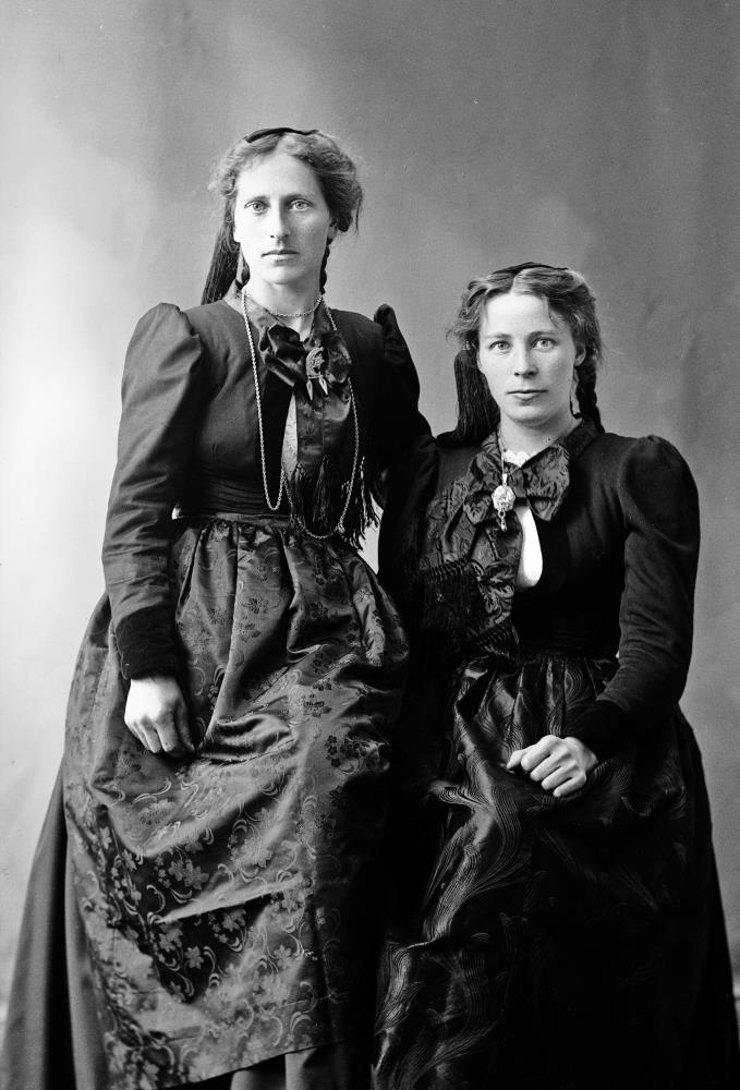 Guðríður Þórarinsdóttir frá Efri Ey í Meðallandi standandi, til vinstri og Vilborg Runólfsdóttir sitjandi, til hægri.