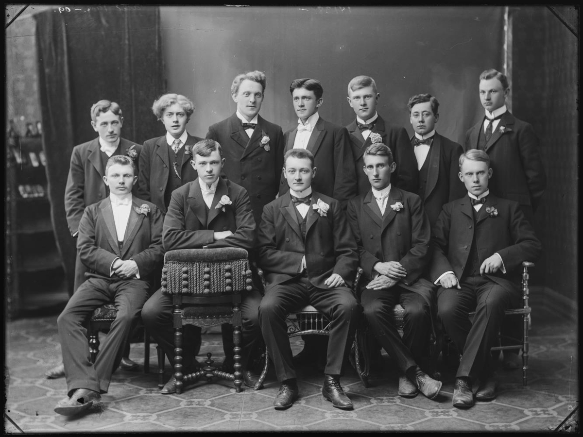 Stúdentar í Rvík 1909: Efri röð: Guðmundur Ásmundsson, Halldór Kristinsson læknir, Símon Þórðarson á Hól, Halldór Kristjánsson (dómstjóra) læknir í Danmörku, Theodór Jakobsson skipamiðlari, Jónas Stephensen (landshöfðingjason) og Martin Bartels bankamaður. Fremri röð: Halldór Halldórsson (sonur sra Þorsteins H) bankam., Bjarni Snæbjörnsson læknir, Jónas Rafnar læknir, Eiríkur Einarsson alþm frá Hæli og Vigfús Ingvar Sigurðsson prestur Desjamýri.