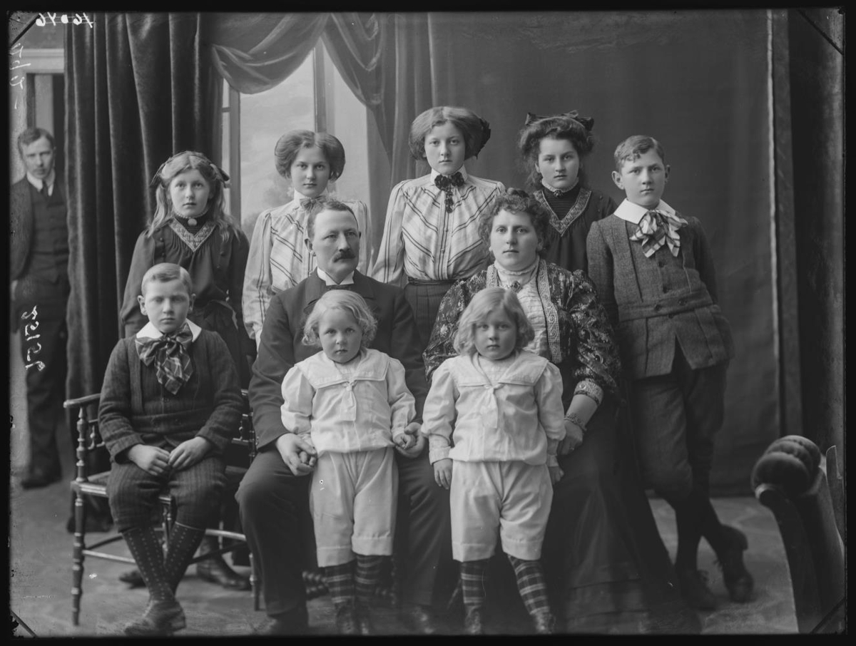 Fremri röð: Einar Z (dó ungur), Helgi kaupm. og frú Geirþrúður og synir