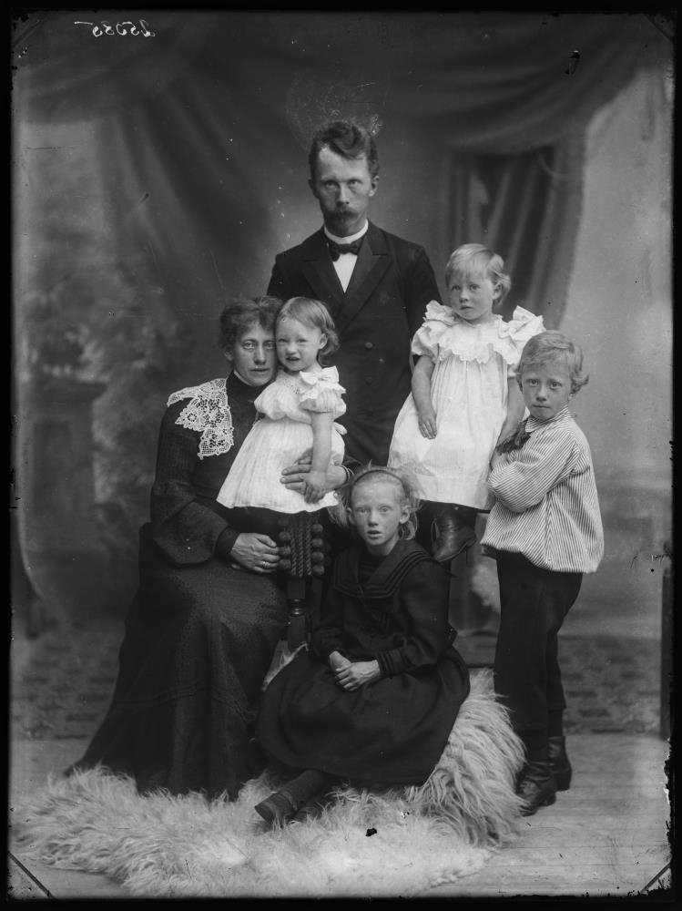 Jón Helgason, síðar biskup, k. hans frú Marie Helgason og b.þ. Þórhildur, Annie, Cecilie og Hálfdan.