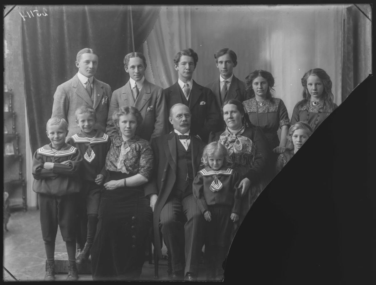 Thor Jensens fjölskyldan, efri röð frá vinstri: Richard, Kjartan, Ólafur, Haukur, Kristín, Kristjana. Fremri röð: Lorentz, Thor, Camilla, Thor Jensen, Hilmar, frú Þorbjörg Jensen og Margrét.