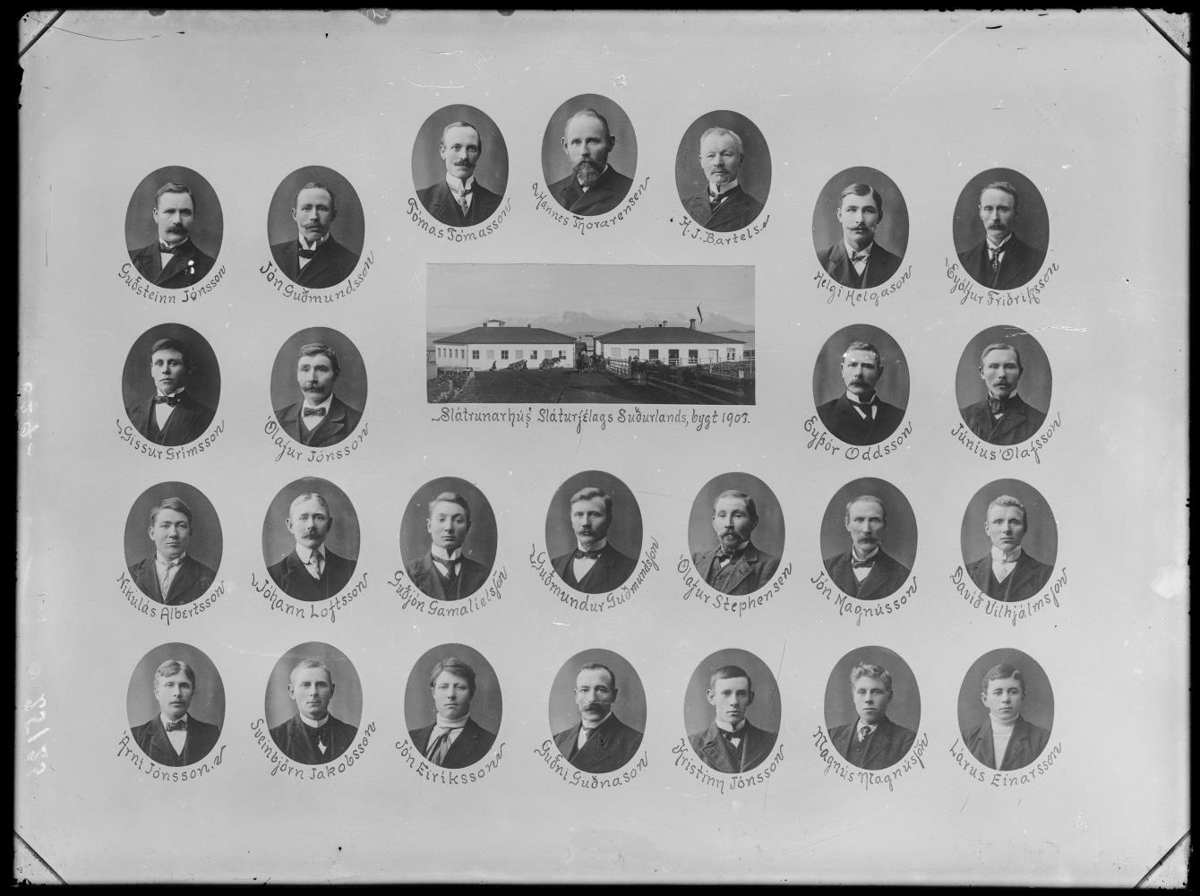 Sláturfélag Suðurlands = starfsmenn sláturhússins. Guðsteinn Jónsson, Jón Guðmundsson, Tómas Tómasson, Hannes Thorarensen, H.J. Bartels, Helgi Helgason og Eyjólfur Friðriksson, Gissur Grímsson og Ólafur Jónsson, Eyþór Oddsson og Júníus Ólafsson, Nikulás Albertsson, Jóhann Loptsson, Guðjón Gamalíelsson, Guðmundur Guðmundsson, Ólafur Stephensen, Jón Magnússon og Davíð Vilhjálmsson; Árni Jónsson, Sveinbjörn Jakobsson, Jón Eiríksson. Guðni Guðnason, Kristinn Jónsson, Magnús Magnússon og Lárus Einarsson.