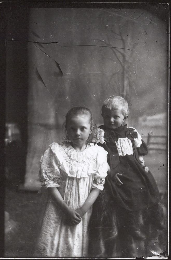 Tvær stelpur. Til vinstri er Sigríður Zoëga ljósmyndari á barnsaldri. Til hægri er Sigríður Bogadóttir frá Búðardal, síðar bankastarfsmaður og húsfreyja í Reykjavík
